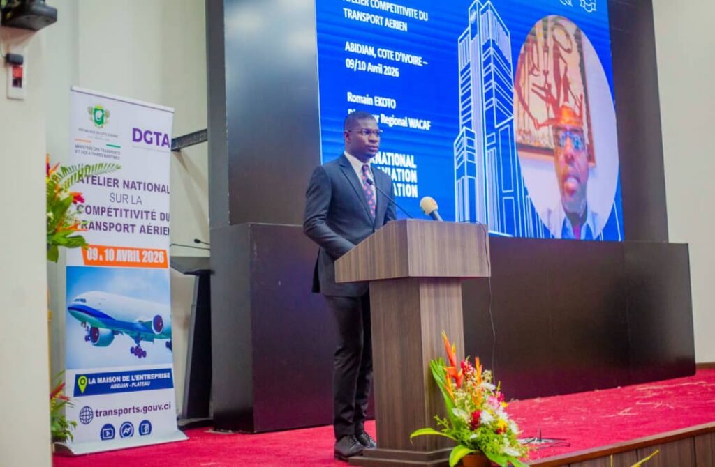Abidjan, jeudi 9 avril 2026. Il n’était pas encore dix heures du matin lorsque la salle Jewels de la Maison de l’entreprise, siège du Patronat ivoirien (CGECI) sur le Plateau, a commencé à se remplir d’un parterre inhabituel : directeurs généraux de l’État, représentants de compagnies aériennes, experts africains de l’aviation civile, délégués des ministères du Sénégal et du Togo, agences de voyage et gens de presse. Un seul sujet réunissait tout ce monde : faire décoller durablement la compétitivité du transport aérien ivoirien.