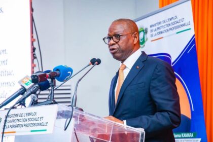 Le Ministre de l’Emploi, de la Protection Sociale et de la Formation Professionnelle, Maître Adama KAMARA, a reçu les vœux de ses collaborateurs le vendredi 13 février 2026 à la Cegrae d’Attoban...